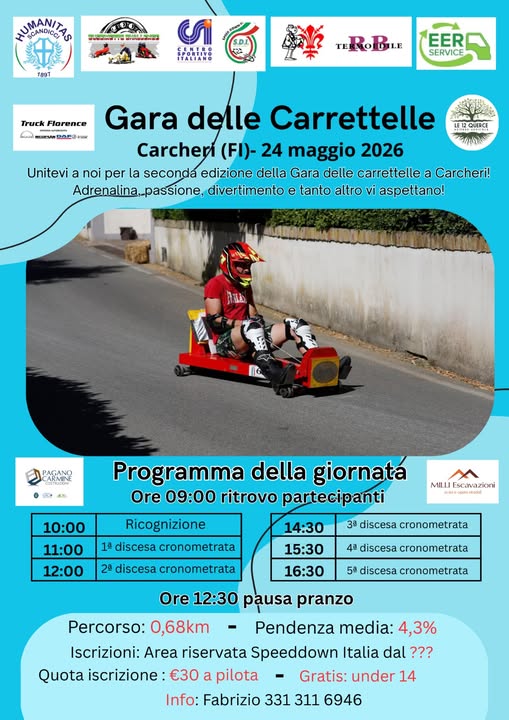 GARA DELLE CARRETTELLE A CARCHERI (FI) 21.03.2026 23:15 l'ASSOCIAZIONE R.A.V. - ODV PARTECIPERA' DOMENICA 24 MAGGGIO ALLA GARA DELLE CARRETTELLE A CARCHERI PROVINCUA DI FIRENZE PER SERVIZIO RADIO.